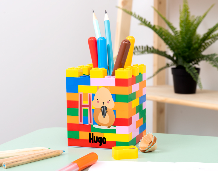 ¿Estás buscando un regalo con el que sorprender a esa persona tan especial? No te preocupes porque tenemos una idea que te va encantar... Podrás crear tu propio portalápices de bloques personalizado con un diseño de lo más adorable y divertido. Este regalo conseguirá rememorar tu infancia si eras de esas personas que jugaba con esos famosos bloques de colores, aunque también sorprenderá a los más peques de casa. Seguro que nunca has tenido un portalápices tan guay como este. ¡Es genial! Si quieres un regalo para triunfar en esa ocasión tan especial, no dudes que este original portalápices de piezas de construcción con diseño impreso es justo lo que necesitas. Podrás mezclar estos bloques de construcción de colores con esta adorable inicial de tu animal favorito. ¿Ya has pensado dónde quieres ponerlo? Quedará perfecto en tu escritorio, en la mesa de la oficina o donde quieras. Así, podrás guardar y tener siempre a mano todos tus bolis y lápices. ¡Serás la envidia de todos tus compis! Pero espera porque tienes que personalizar este producto para tener el mejor portalápices del mundo. Añade el producto al carrito y entra en el área de personalización. Desde ahí, podrás elegir tu inicial con el animal que quieras de nuestra familia 'Alfabeto Animales'. Nosotros nos encargamos del resto para que puedas disfrutar de este portalápices tan original. ¡Tendrás el mejor regalo del mundo! Medidas: 10 x 8 x 8,5 cm (Alto x Ancho x Profundidad) Piezas: 80 aprox. El color y tamaño de las piezas varían según stock. Importante: la edad recomendada para jugar con estas piezas es a partir de 3 años.
