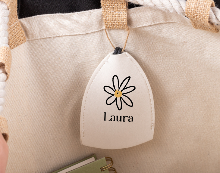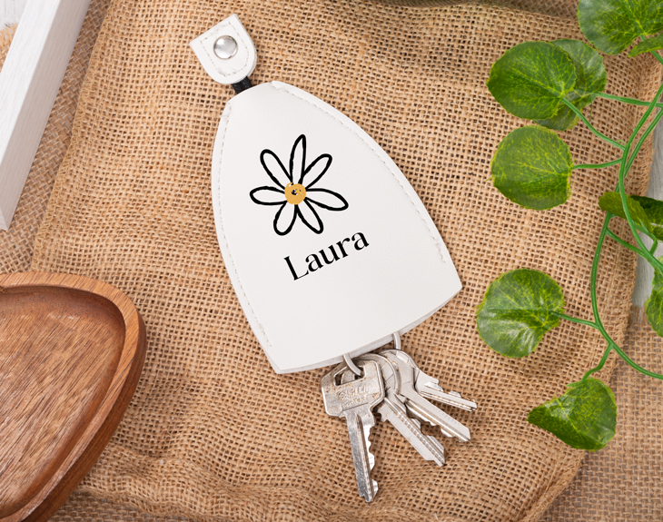 Hay cosas en la vida que no tienen explicación, como por ejemplo, perder las llaves en el sitio más inesperado del mundo. Y seguro que eso es porque no tienes este porta llaves personalizado tan chulo. Además de ser súper bonito también es práctico y te ayudará a tener tus llaves siempre bien localizadas para no perderlas nunca más. ¡Es lo más! Hay muchos llaveros en el mundo, de mil formas y colores diferentes, pero este original llavero te robará el corazón por lo guay que es. Lo que hace que sea diferente es su mecanismo. Si tiramos de la cuerda que tienes en la parte superior, podrás sacar o esconder las llaves. ¡Es que mola un montón! Y su material de polipiel hace que sea muy elegante y lo puedas guardar en cualquier lugar. Personalizar esta funda para llaves es muy sencillo. Si eres fan de las flores y en concreto de las margaritas, su diseño te va a encantar. Si entras al área de personalización, podrás completar esta preciosa margarita con el nombre que quieras. Quedará genial y será un regalo único con el que triunfarás en cualquier ocasión. Medidas: 11,5 x 8 cm. Material: 100% poliuretano.