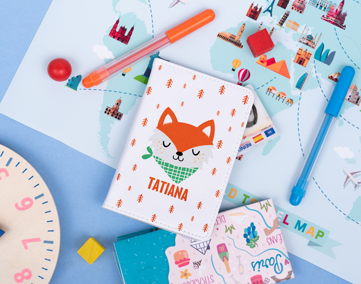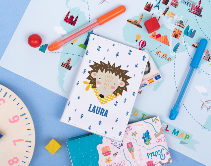 Cuando los peques terminan el curso escolar es el momento perfecto para irse de vacaciones y vivir nuevas aventuras este verano. De campamento con sus nuevos amigos, de excursiones diarias o de viajes con la familia. No importa donde vayan, si el destino está cerca o lejos, los niños también necesitan llevar sus documentos bien organizados y guardados. Por eso, sorprende a tus hijos con este porta pasaporte personalizado en el que podrá añadir su animal favorito y su nombre. ¡Es genial! Viajar y conocer nuevos destinos mola mucho. Tanto niños como adultos disfrutan preparando un viaje y conociendo sitios nuevos cada verano. Pero a la hora de viajar, puede que necesiten tener algún documento a mano (DNI, pasaporte, tarjeta médica...) y con este original funda para el pasaporte lo tendrán todo muy organizado. Tiene el tamaño perfecto para llevarlo siempre encima y a mano. Pero lo mejor es su diseño, hecho especialmente para los peques de la casa. ¡Les encantará! Personalizar este porta pasaporte es tan sencillo que podrán hacerlo los niños. Añade el producto al carrito y entra en el área de personalización. Elige qué animal te gusta más (osito, erizo, zorrito o lobito) y después escribe tu nombre debajo. Así de fácil es tener este precioso porta pasaporte. ¡Es un regalo único para los niños! Medidas: 14 cm x 9,5 cm.