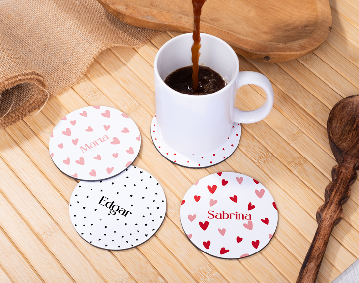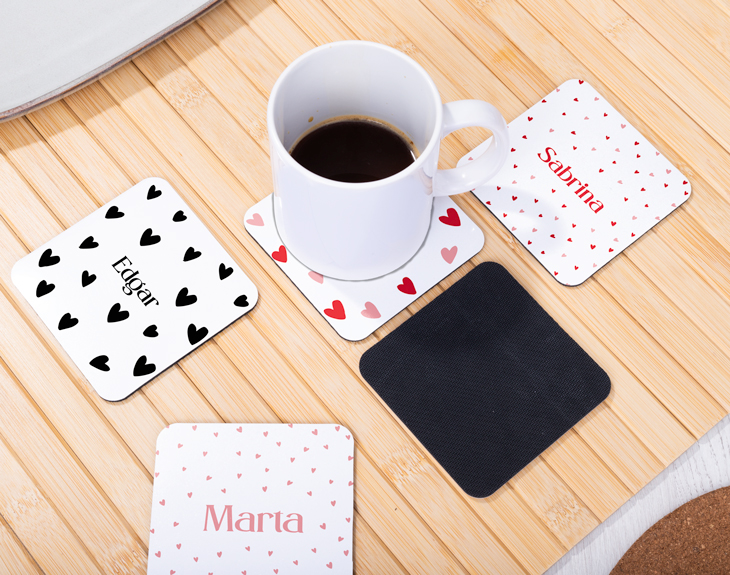 ¿Buscas sorprender a tu pareja? Si se acerca uno de los días más especiales del año y quieres organizar una cena romántica, nuestros posavasos personalizados con diseño "Corazoncitos" son ideales para que os acompañen en este velada de San Valentín. ¡Es ideal para avivar la llama de la relación! Con estos posavasos de neopreno, olvídate de tener que limpiar las manchas de los vasos en la mesa. Son geniales para que puedas organizar fiestas o comidas caseras sin tener que peocuparte por la limpieza. Y son personalizables. ¡Podrás escribir el nombre que tú quieras! Personalizar estos posavasos es súper sencillo. El primer paso a seguir consiste en añadir el producto al carrito y entrar al área de personalización. Una vez ahí, ya puedes escribir el nombre que tú quieras. Pronto estará perfecto y listo para regalar. ¡Será un regalo muy romántico! Diámetro del posavasos redondo: 9,5 cm. Medidas del posavasos cuadrado: 10 cm x 10 cm. Grosor de ambos: 0,3 cm.