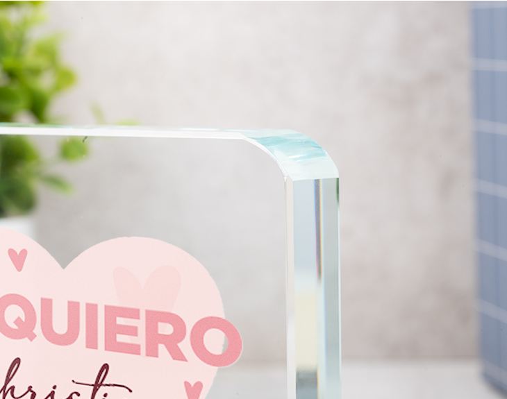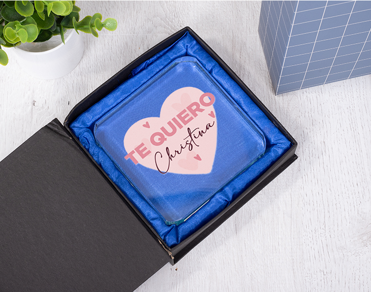 ¿Cuánto hace que no le dices "te quiero" a alguien? Todos tenemos amigos, familiares o una pareja a la que queremos muchísimo. Y es que son esos seres queridos los que hacen que nuestros días sean mucho más llevaderos. Seguro que has vivido experiencias increíbles con todos ellos: comidas, cines, quedadas familiares, o esa primera cita con tu pareja que te hizo quererle para siempre. No hay una frase más importante en la vida de cualquier persona que un "te quiero". Por eso, ¿por qué no declararte de una forma original a ese ser querido que tanto quieres? ¡Tenemos un producto de lo más amoroso para cumplir con este objetivo! Este prisma de cristal personalizado será el detalle perfecto para esa personita especial que siempre está ahí para ti. Este prisma cuadrado con bordes redondeados está hecho para decirle un romántico "te quiero" a una de esas personas que llenan tu vida de luz y alegría. ¿Cómo puedes personalizar este regalo original para su salón? ¡Solo tendrás que añadir el producto al carrito y entrar en el diseñador! Escribe el nombre de esa personita y crea un regalo de lo más bonito para él o ella. ¡El diseño aparecerá impreso en el prisma! Medidas del prisma cuadrado: 9,5 x 1,5 centímetros. Medidas de la caja: 13,5 x 12,5 centímetros. Material: cristal.