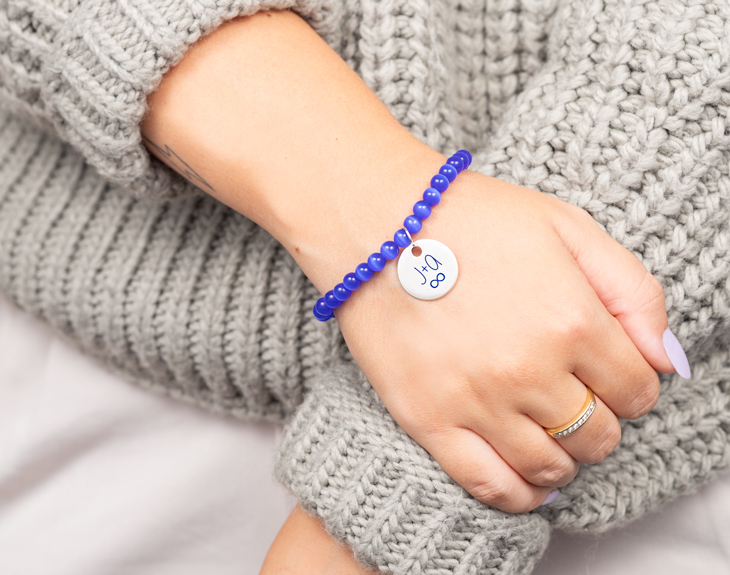 Pulsera personalizada en la que podrás poner el texto que quieras sobre el símbolo del infinito. Muy romántica y, además, 100% personalizable: podrás escoger el color de la grabación y también el tipo de pulsera. Las pulseras de la gama "Colours" son sensacionales, pues además de escoger un mensaje bonito puedes hacer que dicho mensaje se grabe en un color determinado. Así, podrás crear un producto único que se adapte al máximo a los gustos de esa persona especial.