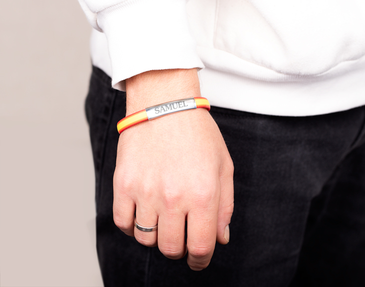 Esta pulsera lo tiene todo, es súper completa: en una pulsera personalizada con el nombre que tú quieras, y además, una pulsera de España, para que puedas gritar al mundo que estás muy orgulloso de tu país.