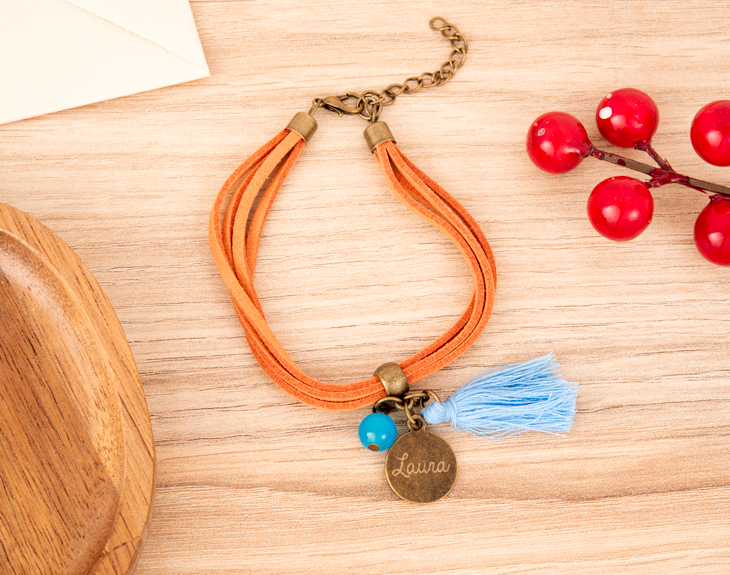La pulsera étnica naranja es perfecta para esas personas que viven la vida como si cada momento fuera el último. Se personaliza con el nombre que tú quieras, convirtiéndose en una pieza única y muy original. Importante: el color de la placa personalizada puede variar según stock.