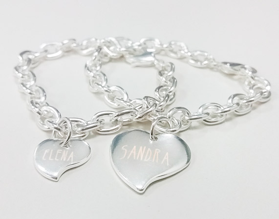 El amor entre una madre y una hija es eterno. Por eso, nostros lo plasmamos en estas pulseras con forma de corazón: una más grande para la mamá y una más pequeñita para la hija. Ponemos vuestros nombres, una fecha o lo que nos digáis.