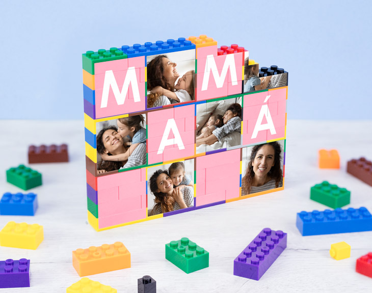 Si ha habido un juguete que ha unido a varias generaciones, serían los juegos de construcción tipo Lego. Si tu madre ha pasado o pasa horas jugando contigo a este divertido juego, seguro que le hará especial ilusión que la sorprendas con nuestro innovador puzzle de bloques personalizado Mosaico de mamá. ¡Una forma de lo más original y tierna de adornar vuestro hogar! Este juego de piezas de construcción seguro que le traerá entrañables recuerdos, al fin y al cabo ¿quién no ha pasado horas jugando a este clásico? Si a ello le sumamos su original diseño, personalizado con vuestras mejores fotos y la palabra “MAMÁ”, seguro que daremos en el clavo. Estas divertidas piezas son totalmente compatibles con piezas de Lego y nos permiten un montón de posibilidades, desde jugar con ellas hasta utilizarlas como decoración de un espacio especial, ¡seguro que queda genial decorando su mesita de noche! Si buscas un detalle para sorprenderla en su cumpleaños o estás pensando en un regalo original para el día de la Madre, nuestro puzzle de bloques será una opción tan divertida como emotiva. Escoge las mejores fotos y prepárate para ver cómo se emociona con vuestros mejores recuerdos, ¡seguro que será un exitazo! Medidas: 14 x 11,5 x 1,5cm El color y tamaño de las piezas varían según stock. Importante: la edad recomendada para jugar con estas piezas es a partir de 3 años. Importante: Este puzzle tiene fines decorativos. Para mantener su apariencia y durabilidad, te recomendamos no desmontarlo.