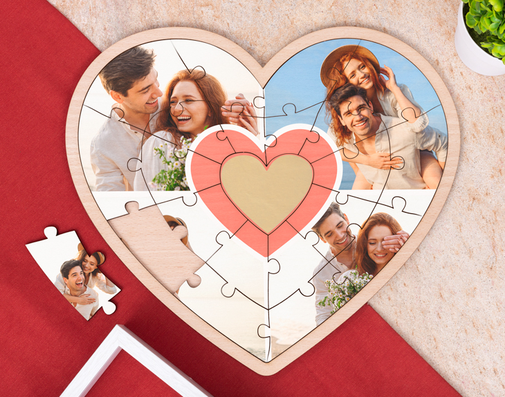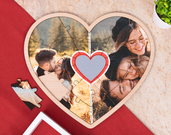 • Puzzle corazón de madera personalizado. • Tarjeta recordatoria.