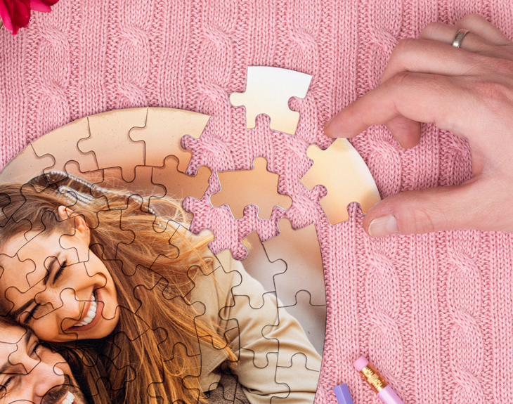 A todos nos encantan los momentos románticos: esos domingos por la tarde de manta y peli con la persona que más queremos en el mundo entero. Este puzzle Corazón romántico llenará de pasión esos momentos de puro amor. Personalízalo con la foto más romántica que encuentres y regálaselo a tu pareja. Tiene 111 piezas, el número perfecto para pasar la tarde con el de tu vida, haciendo el puzzle de la foto de vuestro primer beso, por ejemplo. Cuando lo acabéis, tendréis un cuadro precioso para adornar la habitación o el salón. ¡Qué romántico! Medidas: 30 cm x 24 cm.