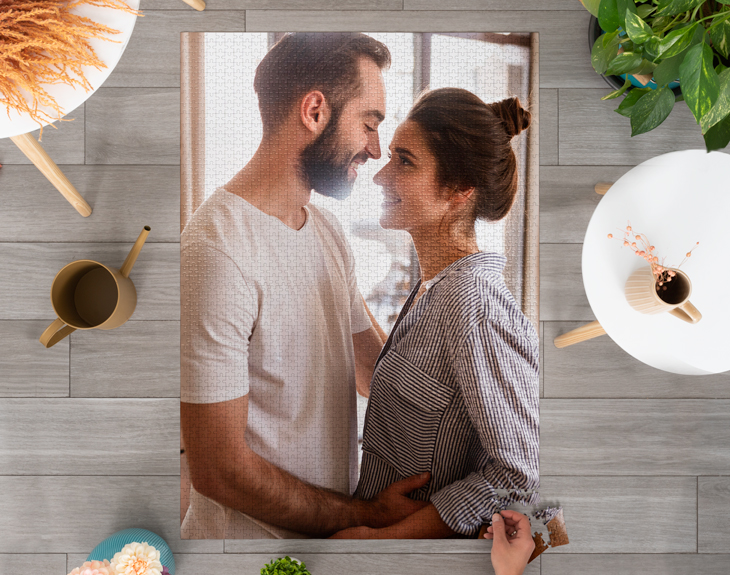 Si hay algo que a la mayoría de las personas nos gusta, nos entretiene y nos desespera un poco a partes iguales son los puzzles. Pasar tiempo con nuestra familia, amigos o pareja intentando resolver un rompecabezas es genial. Por eso, este puzzle de 2.000 piezas personalizado puede ser un regalo único para cualquier ocasión especial. Cuantas más piezas tenga el puzzle más divertido será resolverlo. Nadie tendrá un puzzle tan guay como esta porque está hecho a medida. ¡Es el mejor regalo! Si ya no sabes qué regalar, no te preocupes porque este original puzzle gigante siempre es una buena idea. Triunfarás con él en cualquier celebración como cumpleaños, Día de la Madre o del Padre, tu aniversario o el amigo invisible. Además, podrás elegir la disposición del diseño en el puzzle: horizontal o vertical. ¡Tú decides cada detalle de este maravilloso puzzle! Personalizar este puzzle de 2.000 piezas súper fácil. Primero elige qué tipo de puzzle quieres y añádelo al carrito. Después comienza a crear tu propio diseño añadiendo una foto, el texto que quieras e incluso tus stickers favoritos. ¡Haz la combinación que quieras y crea el mejor puzzle del mundo... y el más grande! Medida aproximada del puzzle: 96 x 68 cm. Piezas: 2.000. Importante: Los puzzles de 1000 y 2000 piezas vienen desarmados.
