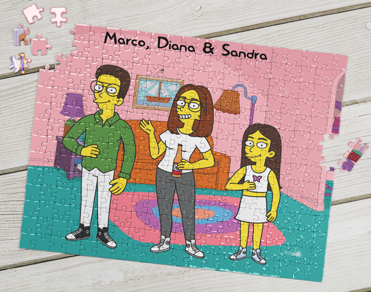 No hay mejor plan de domingo por la tarde que el de hacer puzzles sin parar. ¿Te imaginas tener uno personalizado y que no se sepa cómo es hasta que no lo completas? Ahora puedes hacerlo y, además, de la manera más original del mundo. Se trata de un puzzle personalizado con un diseño de lo más especial y divertido. Si habéis empezado a ver de nuevo la serie de los Simpson porque os encantan estos dibujos, este detalle es para vosotros. Dale una sorpresa a tu pareja, a tu mejor amiga o a tu familia más cercana, y disfruta con ellos en una tarde de puzzle. Tiene 280 piezas, por lo que es perfecto para echar unas horillas de diversión. ¿Cómo funciona? Añade el puzzle al carrito y entra en el área de personalización. El primer paso es elegir el fondo que más te guste: el salón de Los Simpson, el Bar de Moe, el exterior de la casa o la iglesia de Springfield. Después, podrás dejar volar tu imaginación y comenzar a crear tus personajes desde cero y añadiéndoles todos los detalles que creas necesarios para que sean igualitos que vosotros. Por último, añade un breve texto en la parte superior y listo. ¡Tendrás el puzzle más chu-chu-chuli del mundo!
