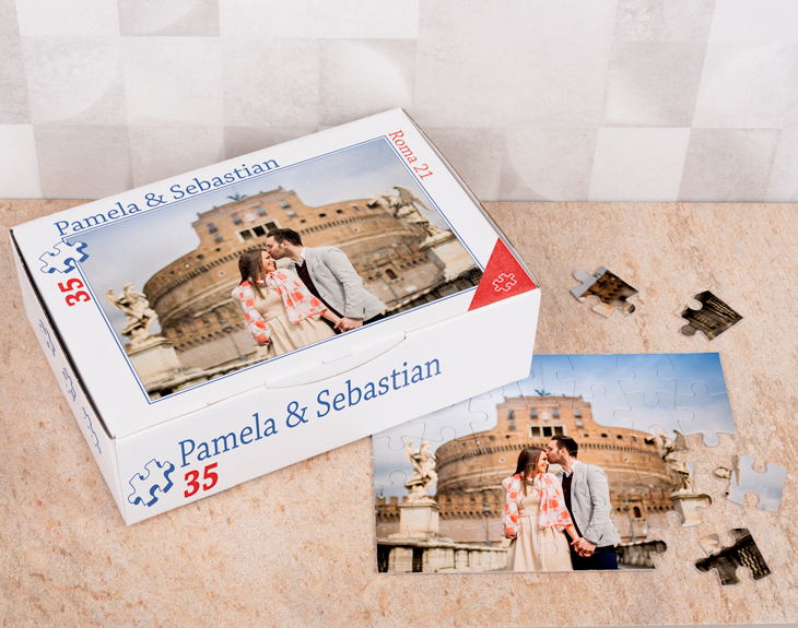 • Puzzle de madera de 4 piezas. • Tarjeta recordatoria.