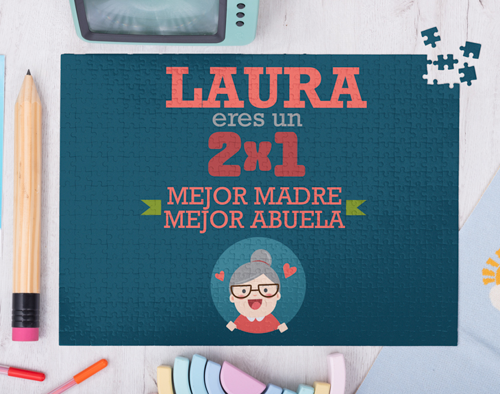 No hay nada como las tardes de domingo en casa de la abuela jugando a juegos de mesa...Por eso, hemos diseñado el puzzle personalizado perfecto para hacerlas aún más especiales. Se trata de un regalo original con el que tu abuela se emocionará muchísimo. Y es que, las abuelas se merecen todos los mimos del mundo, por eso, cualquier momento es bueno para darle una sorpresa así de especial. Medidas puzzle de 70 piezas: 21 cm x 30 cm. Medidas puzzle de 300 piezas: 30 cm x 40 cm. Medidas puzzle de 500 piezas: 34 cm x 48 cm.