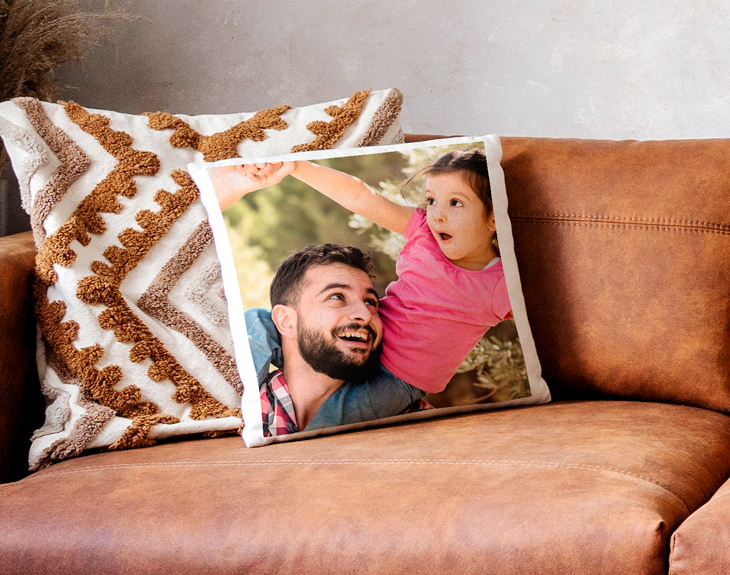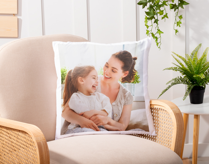 Puedes poner tu foto o el diseño que se te ocurra. En el caso del cojín mini, te recomendamos poner como máximo una foto.
