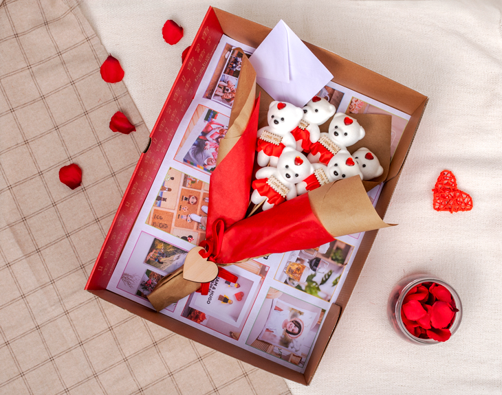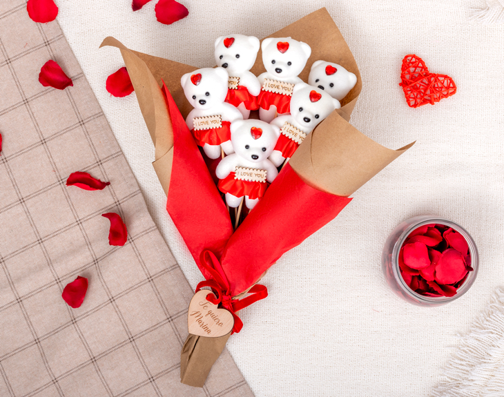 • Ramo de ositos. • Corazón de madera personalizado. • Tarjeta Recordatoria.