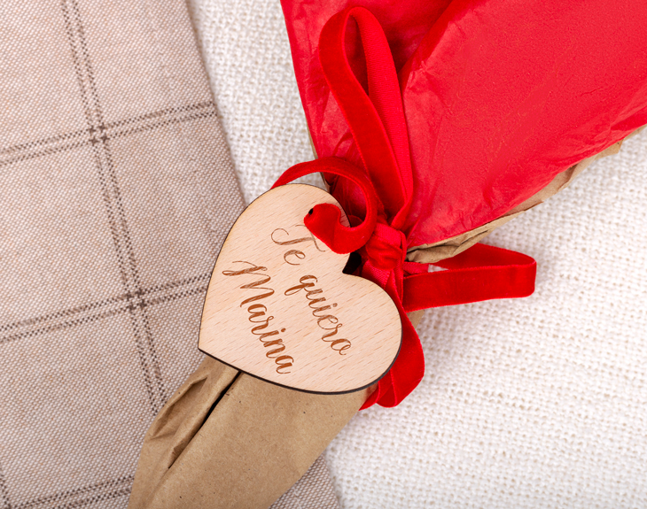 ¿No sabes cómo sorprender a tu pareja este próximo San Valentín? Sabemos que, con el paso de los años, cada vez es más difícil encontrar un regalo original… pero tenemos la opción perfecta para ti: nuestro ramo de ositos personalizado. Un detalle tierno que será todo un acierto, ya sea para un aniversario, el Día de los Enamorados o un cumpleaños. ¡Este ramo hará derretir de amor a tu pareja! Para hacerlo aún más especial, incluimos una etiqueta de madera personalizada con el mensaje que tú elijas. Solo tienes que dejarnos el texto que deseas y nos encargamos de que quede perfecto. Lo recibirás montado y listo para sorprender a esa persona especial. ¿Cómo personalizar este ramo? Muy fácil. Solo tienes que añadir el producto al carrito y entrar a nuestro diseñador. Allí podrás escribir el mensaje que quieras para la etiqueta. ¡Y listo! En poco tiempo recibirás este precioso ramo montado, listo para regalar. ¡El regalo más original para sorprender a tu pareja! Importante: El ramo contiene 6 ositos. Medidas aproximadas: 44 cm x 30 cm.