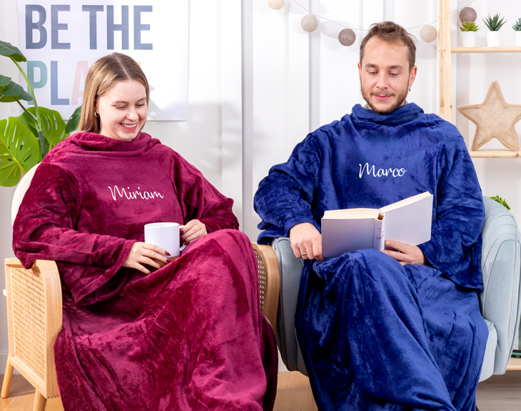 La batamanta personalizada está fabricada en tela 100% polar poliéster. Se trata de un tipo de tejido que retiene el calor y ocupa poco espacio, perfecto para poder guardarla incluso en los sitios más pequeños. Además, su suavidad hace que te envuelva y no quieras ni levantarte del sofá. Nuestra talla única de 125 x 180 cm tiene una medida estándar que se ajusta a todas las personas.