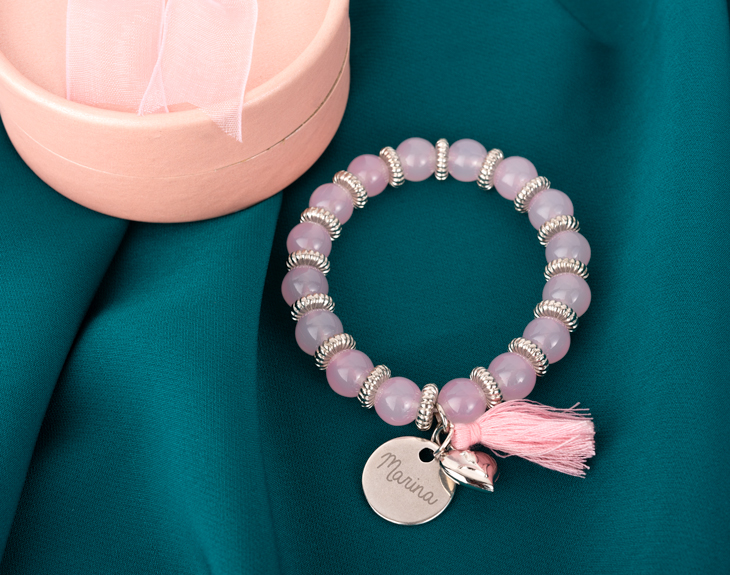 Sabemos también que una pulsera es un regalo muy elegante y muy personal, porque, de pronto, se convierte en un amuleto muy especial. ¿Cuántas pulseras tienes en tus muñecas que te recuerdan a amigos, familiares y, en definitiva, a personas que significan mucho para ti? Si es el momento de hacer un regalo muy especial a esa personita tan importante en tu vida, una pulsera personalizada puede ser la opción que te lleve al éxito.