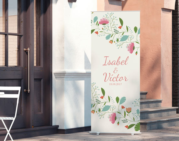 Solo tendrás que elegir alguno de los diseños que tenemos en la página web, o hacer el tuyo propio. Cuando lo tengas, la entrada del evento o celebración es un espacio muy bueno para colocarlo.