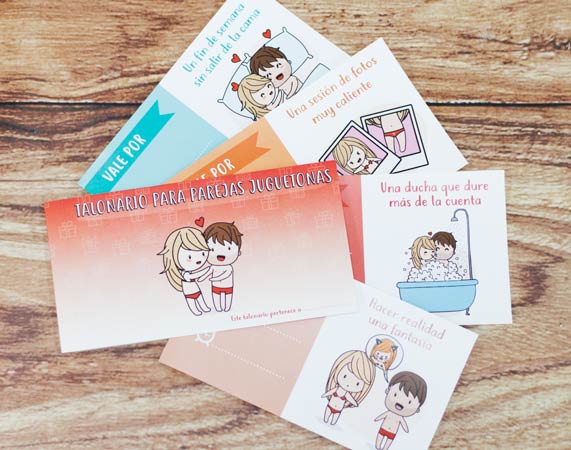 Es una idea de regalo muy divertida, ya que los cheques te los irá dando cuando quiera y tú no tendrás más remedio que hacer lo que diga el vale, desde ser todo el día su chofer, hasta prepararle el desayuno, permitir que se convierta en el propietario o propietaria de la tele durante todo el día o dejar que decida el restaurante donde cenareis. Pero no te preocupes, que también hay muchos vales que tú también disfrutarás, como por ejemplo, los de miles de besos y abrazos, tardes de pelis y mimos o los vales para parejas juguetonas.