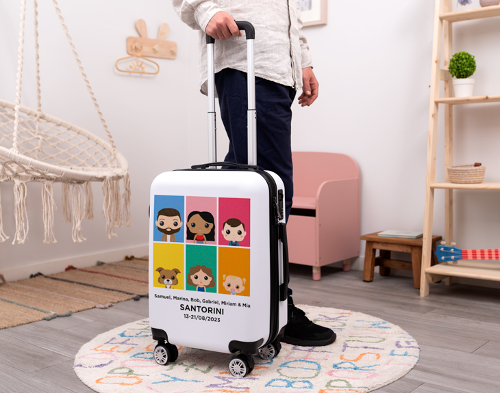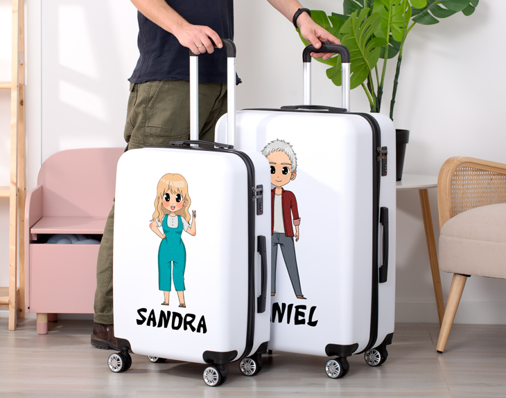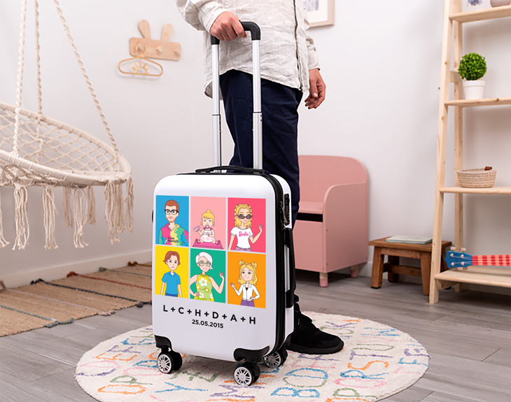 La solución ha llegado: diseñar maletas de viaje personalizadas, exclusivas para cada uno. Podrás personalizar la cara visible de la maleta con una foto especial, tu propio texto (diseñado, de principio a fin, por ti) o con un diseño divertido preparado por nuestro equipo de marketing. ¡Tienes infinitas opciones para diseñar una maleta adaptada 100% a ti!