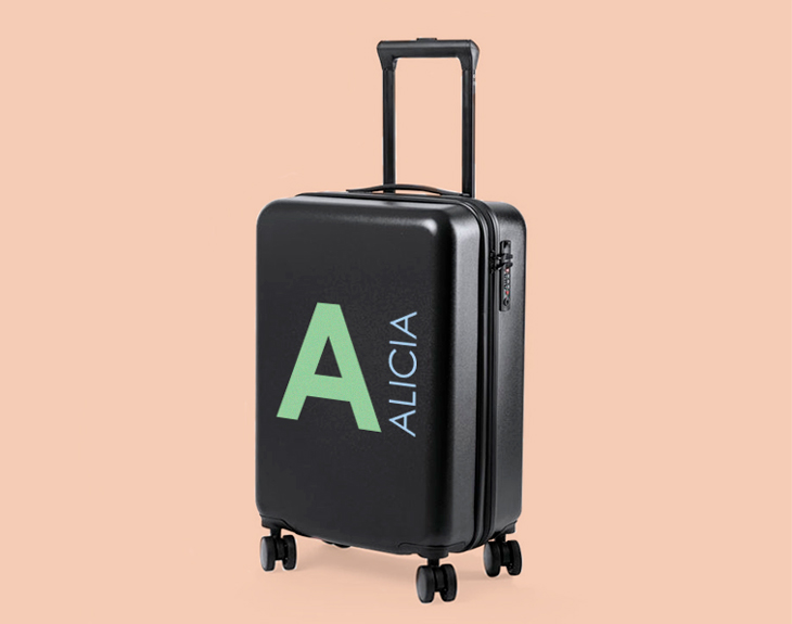 La manera de personalizar estas maletas es la misma: llegarás a nuestro diseñador y podrás subir una imagen para ajustarla a la maleta, o escribir el texto que tienes pensado. ¡No te olvides de elegir tipografía y color para el texto!