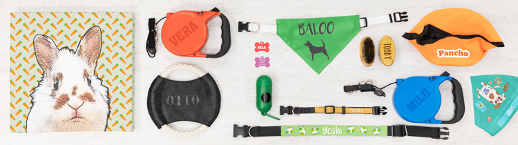 En esta sección encontrarás todos esos productos que tu mascota usa a diario, desde cuencos para comer, correas personalizadas, portabolsas o packs de paseo. Bastará con que nos digas su nombre y tendrá todos sus productos favoritos personalizados. ¿No te parece una idea increíble?