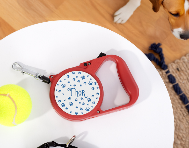 - Correas personalizadas: Tu perrito o perrita será la reina de los paseos con nuestra correa extensible personalizada. Está pensada para que puedan usarla incluso para las razas más grandes. Además, puedes dejarle libertad a la vez que le controlas, ya que la correa tiene un gran recorrido. Podrá correr y jugar sin peligro de escaparse. ¡Es genial!