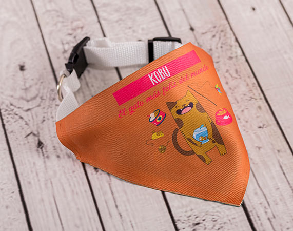 - Collares personalizados: Seguro que tú también piensas que tu perro o perra es la más bonita del mundo, pero si quieres que además de eso sea la más original, nuestros collares personalizados son la solución. Disponemos de collares con forma de pañuelo para que puedas personalizarlo con su fotografía, collares para personalizar con su nombre e incluso collares con estampado militar. También hemos creado diseños tan divertidos como el de “El gato más feliz del mundo”,” Si mi amo mola, yo también” o “Tan feliz como mi dueño”, perfectos para que tu mascota sea la más original de todo el parque.