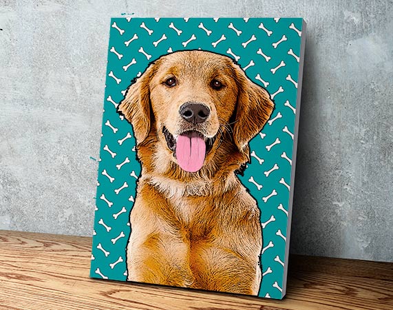 Cuando llega una mascota a nuestra vida, rápidamente se convierte en un miembro más de la familia, incluso diríamos que en muchas ocasiones pasa a ser el miembro más mimado de toda la casa. Por eso, nuestro lienzo pop personalizado es el regalo perfecto para ese amigo o familiar que ama a su mascota por encima de todas las cosas. Se trata de un lienzo estilo pop con la fotografía del animal y el divertido fondo que tu elijas. En cuanto lo vea querrá colgarlo en medio del salón para darle aún más protagonismo al rey de la casa. ¡Seguro que le gusta muchísimo!