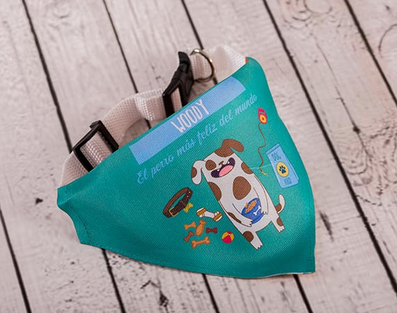 - Pack de paseo para perros personalizados:Seguro que el paseo es uno de los momentos favoritos de tu perro, por eso, este pack personalizado es perfecto para que disfrutéis aún más de ese bonito rato juntos. Incluye un pañuelo para personalizar con su nombre o con su fotografía, y un portabolsas para recoger sus excrementos.