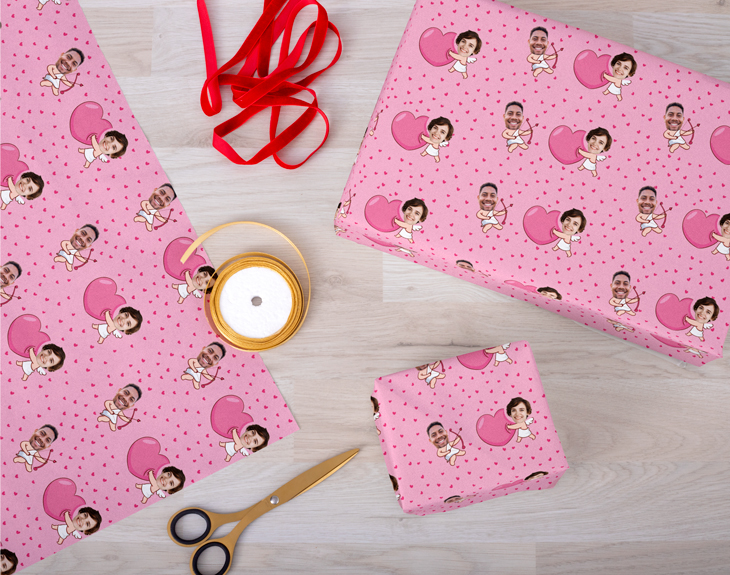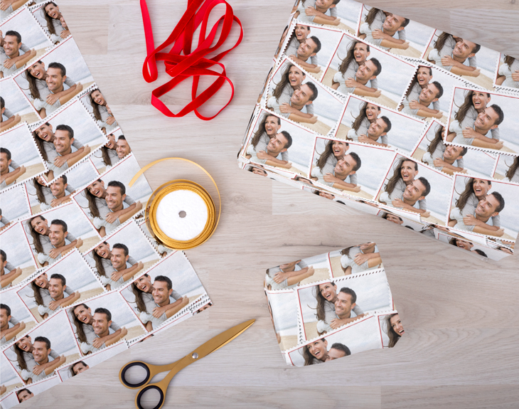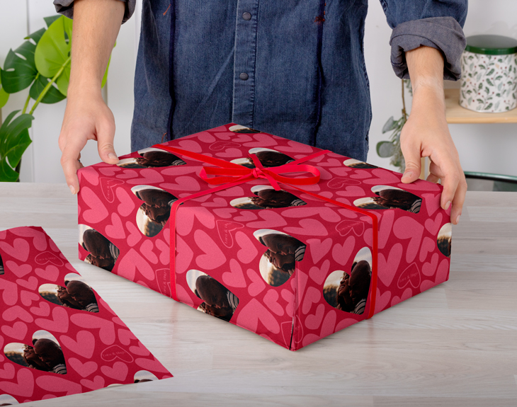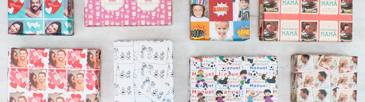 Imagínate la situación: tu hijo se levanta por la mañana el día de su cumpleaños, va al salón de casa y se encuentra un montón de regalos envueltos en un papel que tiene a sus superhéroes favoritos. ¿No crees que le encantará? Pero es que en un adulto sería la misma reacción de ilusión y felicidad: piensa en cómo sería si tu pareja te hace un regalo por vuestro aniversario que va envuelto en un papel con un collage de fotos vuestras.