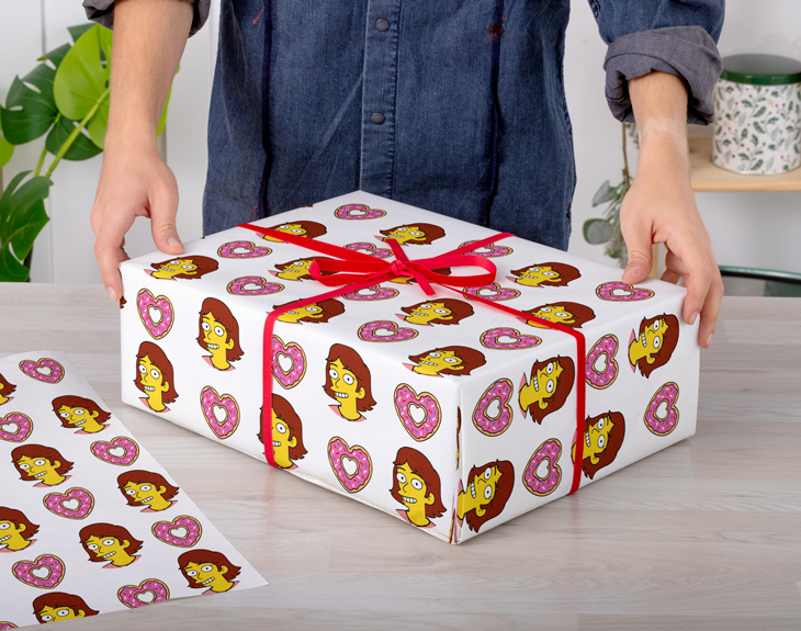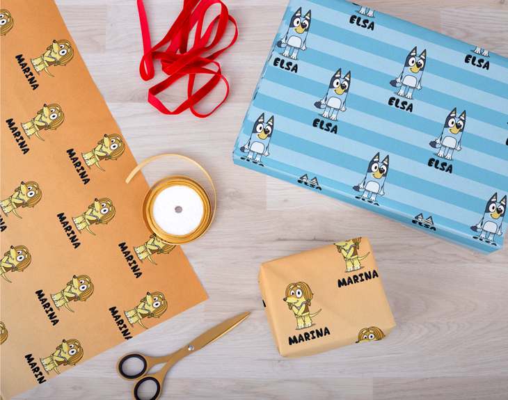 Eso no es un problema con este papel, ya que lo que tienes que hacer es elegir entre 50 personajes, ponerles nombre y ya tendrás el papel de regalo más adorable del mundo.