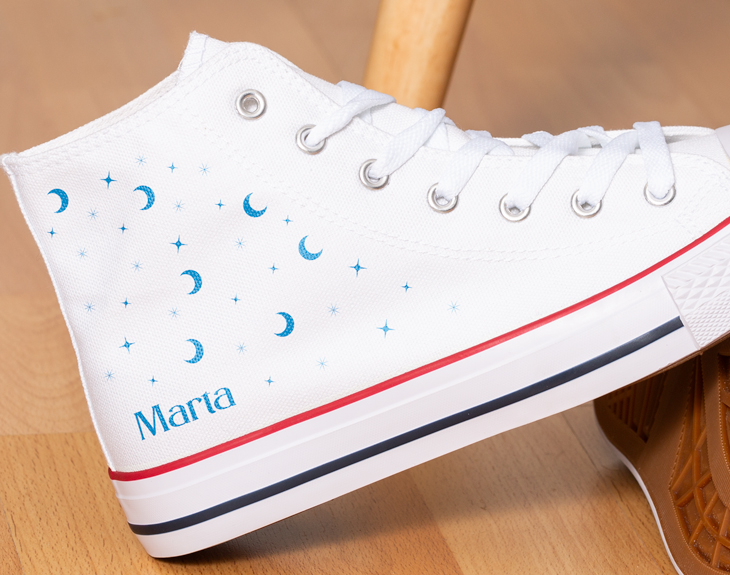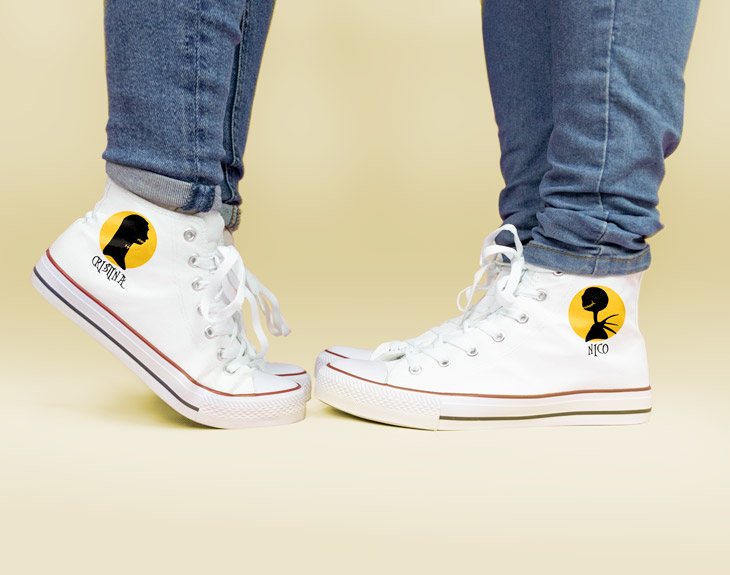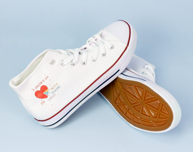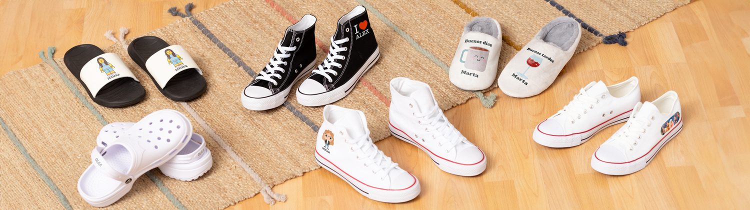 ¡Llegó el momento de tener tu propio calzado personalizado! En esta sección encontrarás la opción perfecta para todo tipo de ocasiones: zapatillas, zapatillas de estar por casa, pantuflas, chanclas,zuecos...¡deja huella allá dónde vayas! Personalízalas como quieras: con una fotografía, con una fecha, con uno de nuestros diseños... Como siempre decimos, tu imaginación es la que marca el límite. Así que ya sabes: elige tus zapatillas personalizadas y camina por la vida sabiendo que son únicas en el mundo entero.