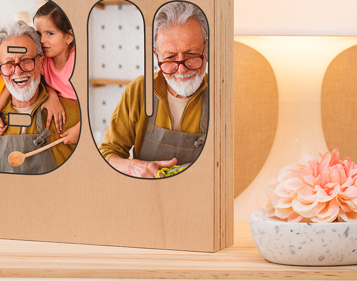Si crees que tu abuelo es el mejor abuelo, pero también el mejor padre, este reloj de madera es perfecto para él. Elige tres fotos divertidas con él y personaliza cada una de las letras de la palabra ABU. Es un regalo muy especial que seguro que le hace muchísima ilusión. Aprovecha el Día del Padre, o cualquier otro momento del año para sacarle una sonrisa. Tienes dos opciones de compra: Medidas reloj de pared: 49,5 x 30 cm. Medidas reloj de mesa: 27 x 20 cm. Importante: Las maderas tienen vetas y estas quedan reflejadas en la imagen. Instalación: El reloj de pared cuenta con agujeros en la parte posterior, hechos a medida por si quieres colgarlo utilizando tornillos, chinchetas, o lo que creas conveniente. ¡Cabrán perfectamente en los agujeros que vienen incluidos en la madera!