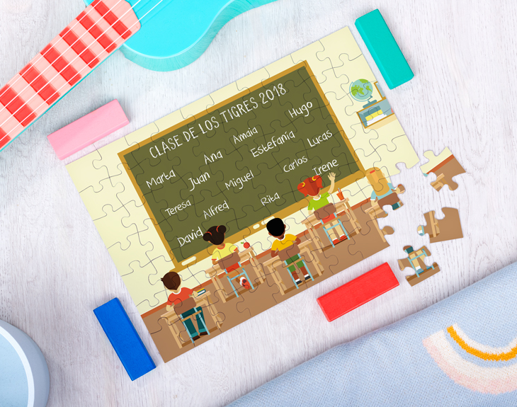 Si queréis sorprender a vuestro o vuestra profe de una forma original y divertida, este reloj personalizado es el regalo perfecto. Aprovechad el final de las clases para darle un detalle en agradecimiento a todo lo que habéis aprendido en sus clases. Seguro que le hace mucha ilusión que sus alumnos se junten para hacerle este regalo tan chulo. Solamente nos tendréis que decir los nombres de todos los de la clase y nosotros lo añadiremos a este diseño. Este reloj de madera se convertirá en el centro de atención de la clase. ¿No os parece una idea genial? Tienes dos opciones de compra: Medidas reloj de pared: 49,5 x 30 cm. Medidas reloj de mesa: 27 x 20 cm. Importante: Las maderas tienen vetas y estas quedan reflejadas en la imagen