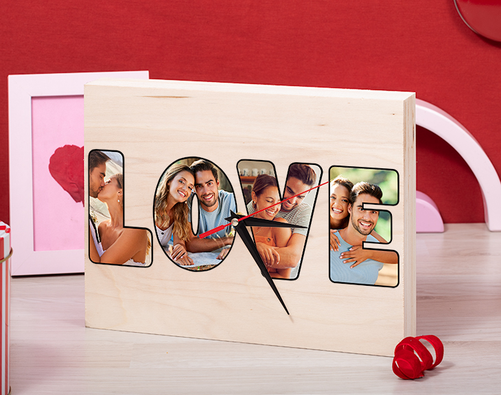 Nuestro reloj personalizado LOVE está diseñado para sorprender a tu pareja en el momento que menos se lo espere. Si sois de esas parejas que con solo mirarse saltan chispas, este regalo original es perfecto para sacarle la sonrisa más grande que nunca hayas visto de ella. Personaliza cada letra con una foto y escribe la historia de amor más bonita del mundo. Tienes dos opciones de compra: Medidas reloj de pared: 49,5 x 30 cm. Medidas reloj de mesa: 27 x 20 cm. Importante: Las maderas tienen vetas y estas quedan reflejadas en la imagen. Instalación: El reloj de pared cuenta con agujeros en la parte posterior, hechos a medida por si quieres colgarlo utilizando tornillos, chinchetas, o lo que creas conveniente. ¡Cabrán perfectamente en los agujeros que vienen incluidos en la madera!