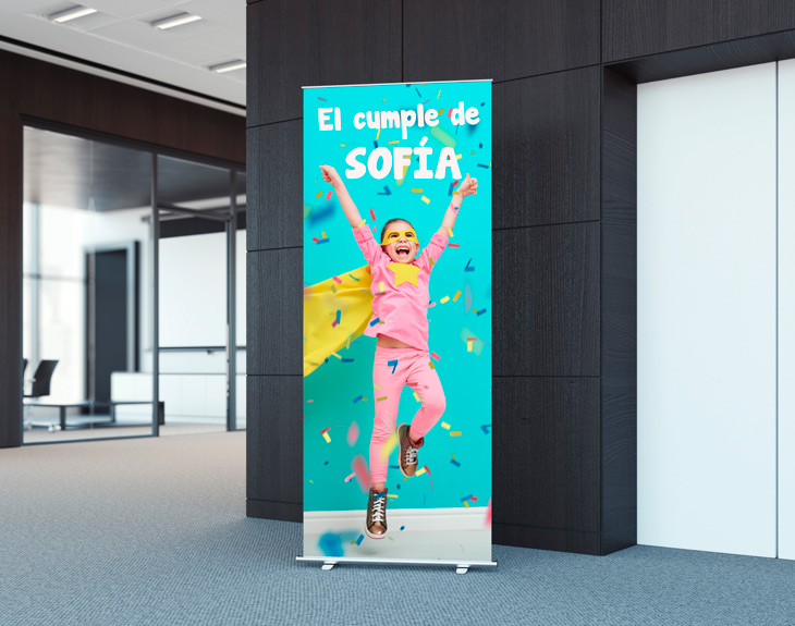• Rollup personalizado (195 x 74 cm aproximadamente). • Soporte. • Tarjeta recordatoria.