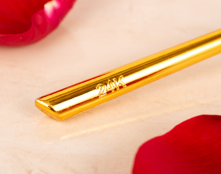 El amor eterno merece un regalo eterno. Por eso, esta rosa bañada en oro es perfecta para sorprender a tu pareja, a tu madre o a cualquier otra persona por la que sientas devoción. La rosa está elaborada en polietileno, un material prácticamente eterno. Sobre él se ha suministrado una fina lámina de oro de 24 kilates, haciendo que sea un regalo elegante y diferente. Las rosas se elaboran una a una de manera artesanal: su fabricación requiere más de 4 días y hasta 65 pasos distintos. Por eso, no hay rosas iguales: cada pétalo, cada hoja y cada tallo son únicos. Sus dimensiones son perfectas para decorar cualquier estancia de la casa: un escritorio, un dormitorio, el alféizar de una ventana... Para hacer que el regalo sea aun más especial, la caja en la que se contiene la rosa estará personalizada con el nombre que tú nos digas. Así la persona destinataria se sentirá la más especial del universo. Datos técnicos: • Baño en oro de 24 kilates. • Dimensiones:25,5 x 8,5 centímetros.
