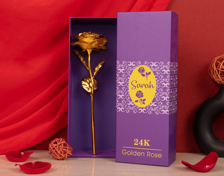 • Rosa bañada en oro personalizada. • Estuche • Tarjeta Recordatoria.