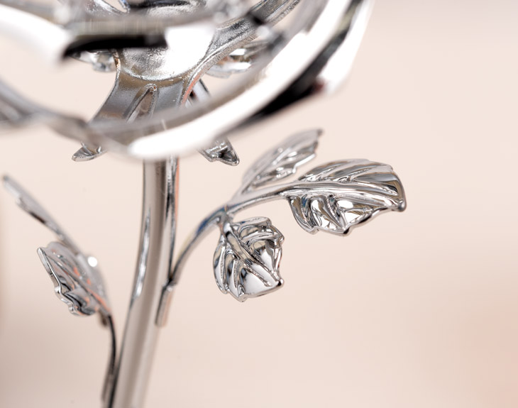 Si quieres tener un bello detalle con tu pareja, con tu madre o con cualquier otra persona especial, tienes ante ti lo que buscabas: una exquisita rosa con cristales de Swarovski personalizada. Un regalo que le dejará sin palabras y que conservará toda la vida. Este no es un objeto para todos los públicos, sino para personas de gustos refinados y exclusivos. En la palma de la mano podrás entregar todo lo bello de una rosa, pero con duración eterna y el excelente toque de los cristales de Swarovski. Por supuesto, para que sea un regalo único, podrás personalizar la rosa con el texto que quieras. Material: metal prensados en frío con acero y galvanizados. Datos técnicos: • Peso: 18,1 gramos. • Dimensiones: 8,5 x 3 centímetros.