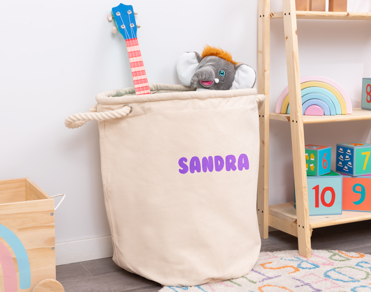 Si la habitación de tu hijo está siempre desordenada y deja los juguetes por el suelo, aquí tenemos la solución. Se trata de este saco para guardar juguetes personalizado que logrará mantener la habitación recogida. Es ideal para que los pequeños se diviertan mientras aprenden la importancia de tener el entorno ordenado. Además, ¡este saco es personalizable! No solo es útil y práctico, sino que además agrega un toque personal a la habitación. La posibilidad de personalizarlo con el nombre de tu hijo o hija lo convierte en un regalo único y especial. Su tamaño espacioso de 40x40x60 centímetros es ideal para que pueda guardar todas las cosas que quiera. Tiene dos asas de cuerda, de longitud 50 centímetros, perfecto para trasladarlo de un lado a otro de la casa. ¿Cómo se personaliza este saco? Lo primero es añadir el producto al carrito y entrar al área de personalización. Sólo tendrás que decirnos cuál es el nombre que quieres poner y terminar la compra. ¡Del resto nos encargamos nosotros! Información técnica: • Medidas: 40x40x60cm • Asas estilo cuerda (longitud: 50 cm) • Material: Lona de algondón 100%