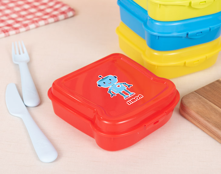 ¿A tu hijo o hija le fascinan los robots? Haz que la hora de la merienda sea más divertida con nuestra sandwichera personalizada Robot amoroso. Un divertido amiguito que custodiará su bocadillo hasta la hora del recreo y que irá personalizado con su nombre. ¡Seguro que estará deseando estrenarla! Las sandwicheras son el mejor invento para proteger nuestros bocadillos de pan de molde del exterior. Son rígidas y no se aplastarán con el peso de los libros en la mochila y lo mejor es que, al ser reutilizables, estaremos ayudando a conservar el planeta y nos ahorraremos algo de dinero al no tener que comprar envoltorios desechables. ¡Todo ventajas! Al hacer el pedido, podrás escoger también entre 4 colores diferentes de sandwichera: amarillo, rojo, azul y verde. El diseño será, sin duda, la estrella de este regalo original y es que está protagonizado por un tierno robot con corazoncito. Bajo él, irá impreso el nombre de vuestro niño/a para que su nuevo táper no pueda perderse. En el momento de hacer el pedido, dispones de una plantilla en la que anotar el nombre de tu peque, así puedes ver el resultado directamente en pantalla. Ese diseño, lo imprimiremos sobre vinilo y lo adheriremos directamente en la superficie de vuestra nueva sandwichera. Reponer fuerzas después de un largo día de clases o durante el recreo se vuelve imprescindible cuando los niños están llenos de energía. Asegúrate de que están bien alimentados sorprendiéndoles con detalles tan bonitos y cargados de amor como esta sandwichera infantil personalizada. ¡Seguro que estarán deseando estrenarla! Tú también estarás muy tranquilo sabiendo que, al estar personalizada con su nombre, será mucho más difícil que se extravíe. Medidas: Largo: 14cm Ancho: 14cm Alto: 5cm Material: plástico.
