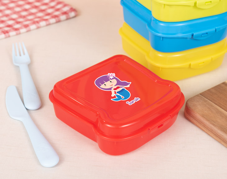 ¿Tu hija es la mejor nadadora de la urbanización? ¿Se pasa el día en el agua? ¡Seguro que más de una vez ha jugado con sus amigas a que eran sirenas! Si a tu peque le apasionan las sirenas y todo lo que tenga que ver con su mundo, le fascinará contar con esta sandwichera personalizada Sirena Azul para su vuelta al cole. ¡Cada vez que la vea, imaginará mil y una aventuras! Este práctico táper está pensado y hecho a medida para guardar sus sándwiches de pan de molde e incluso algún pequeño aperitivo más. Es una forma excelente de llevar su merienda en el recreo o para después de clase ya que, al estar fabricada en plástico rígido, protegerá el contenido de ser aplastado en la mochila, ¡su bocadillo estará como nuevo cuando lo vaya a comer! Además, es una forma excelente de ayudar al medio ambiente, ya que podremos olvidarnos por fin de esos incómodos y contaminantes envoltorios de plástico o papel de plata. La personalización se consigue estampando un vinilo con una tierna sirena en la portada de la sandwichera. Tu hija podrá imaginarse que es ella misma ya que, debajo de esta sirenita irá colocado el nombre de tu pequeña. Para diseñar este regalo, solo tienes que escoger el color de sandwichera infantil que más te guste entre cuatro opciones: azul, verde, rojo y amarillo. Posteriormente, accede al diseño del regalo y anota el nombre de tu hija bajo su personaje. El resultado lo ves directamente en pantalla para evitar errores y para que puedas imaginarte cómo quedará. Reponer fuerzas con un pequeño aperitivo es imprescindible, ¡sobre todo si tu hija no para quieta! Hazte con este regalo original y estará deseando que llegue el recreo para poder abrirla y descubrir qué delicioso bocadillo le has preparado. ¡Lo mejor para que la vuelta al cole sea especial! Medidas: Largo: 14cm Ancho: 14cm Alto: 5cm Material: plástico.