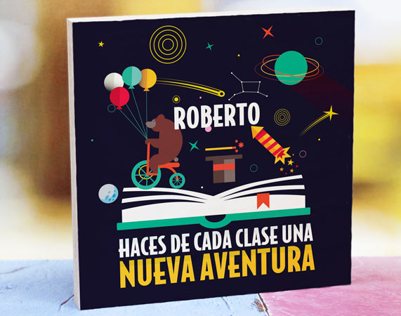 Gracias a la mejor profe del mundo, la rutina ha pasado a ser algo muy especial. Además de aprender, ir al cole es algo mucho más divertido. Si tu profe consigue hacer de cada clase una nueva aventura, esta tabla de madera personalizada es perfecta para impresionarla. Os cuenta mil historias con las que siempre aprendéis una bonita lección, desarrolla vuestra creatividad y os hace ser mejor personas. Porque gracias a ella estáis más que preparados para comeros el mundo, es el momento de demostrarle todo lo que la queréis. ¡Lo valorará muchísimo!