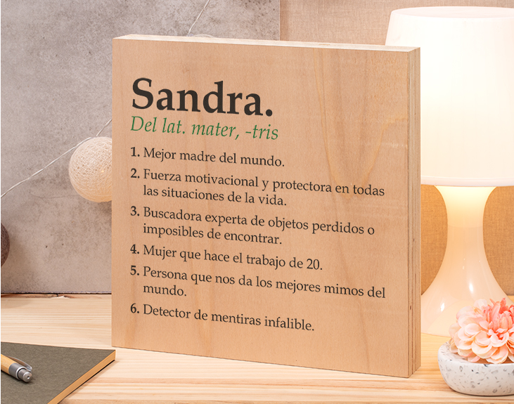 La tabla de madera perfecta para plasmar la definición de lo que significa para ti tu mamá. Si te quedas en blanco, no te preocupes, porque hemos diseñado esta pequeña definición para que puedas darle una sorpresa enorme a la mejor persona del mundo. Conviértete en un buen hijo en el Día de la Madre, en día de su cumpleaños o cualquier momento insospechado.
