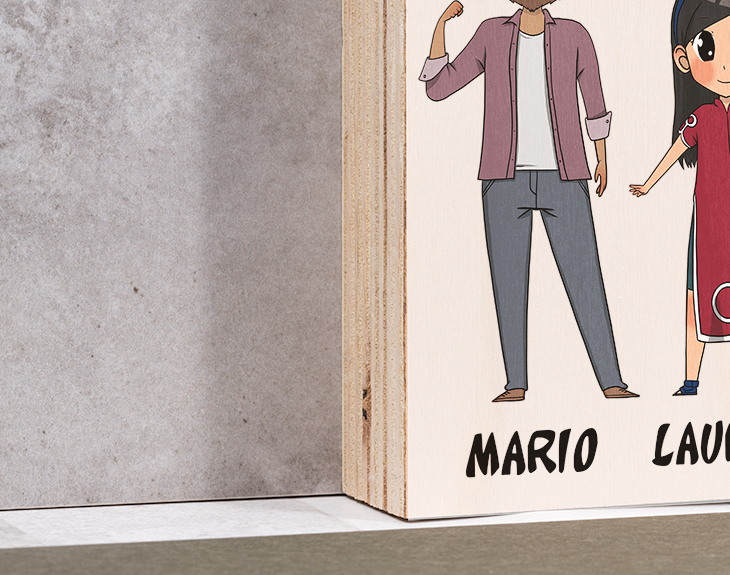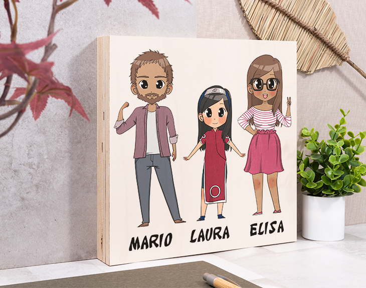 Si Naruto es un referente para ti, esta tabla de madera personalizada está hecha para ti. Si Dragon Ball es una de tus series favoritas, esta tabla está pensada para ti. Y si, tu pareja o familia está muy pendiente de las nuevas tendencias de la cultura japonesa, este regalo no puede faltar en tu casa. Servirá para decorar el salón o una habitación de una manera muy original y divertida. Elige hasta 8 personajes de anime y ponles los nombres que quieras. Te encontrarás con una tabla de madera única y lista para sorprender a las personas más especiales. ¡Que empiece la fiesta anime en tu vida! Importante: Las maderas tienen vetas y estas quedan reflejadas en la imagen. Importante: a partir de 6 personajes. se colocarán en dos filas. Es decir: - Familia de 6 personajes: 3 en la fila superior, y 3 en la inferior. - Familia de 7 personajes: 4 en la fila superior, y 3 en la inferior. - Familia de 8 personajes: 4 en la fila superior, y 4 en la inferior.