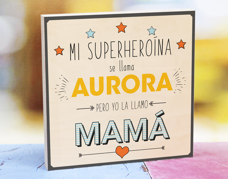 Si buscas algún elemento decorativo para tu hogar, para el salón, o dormitorio para tu madre, por ejemplo, esta tabla de madera es perfecta para sorprender en un momento insospechado. Si tu heroína se llama mamá no tienes que pensártelo dos veces: la tabla personalizada está diseñada para que le des una sorpresa alucinante. Solo tienes que decirnos su nombre y nosotros hacemos el resto. Dale una alegría y demuéstrale que sigues pensando en ella y que estás muy agradecido por todo lo que ha hecho por ti; sobre todo, por la educación que te ha dado.