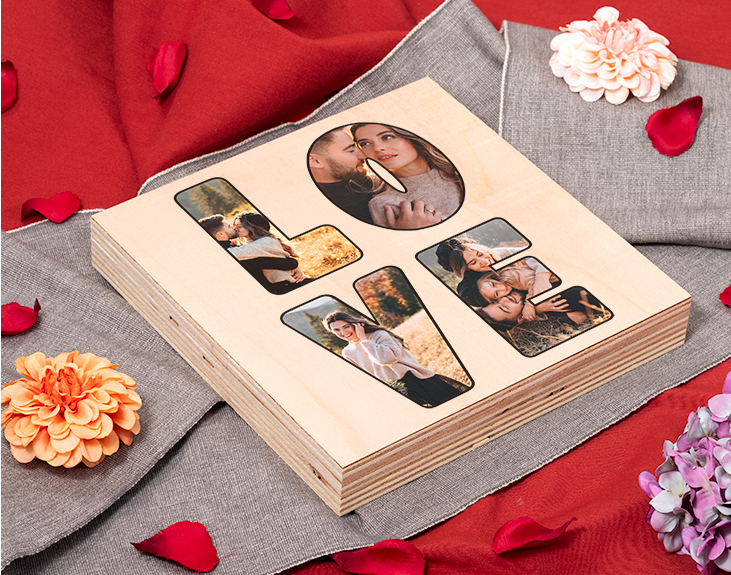 Nuestra tabla de madera es perfecta para utilizarla como decoración. Y se convierte en mucho más especial cuando en ella está grabada la palabra LOVE personalizada con fotos. Escoge una foto por cada letra de la palabra del amor y diseña un LOVE que refleje la preciosa historia de amor que vives con tu pareja. Esta tabla de madera personalizada es perfecta para el día de San Valentín. Medidas de la tabla: 27 cm x 27 cm.