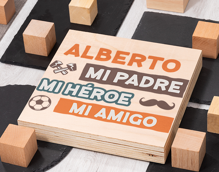 Padre, confidente, amigo y sobre todo superhéroe. Si tu padre es la persona más importante de tu vida y quieres agradecerle todo lo que hace por ti con un detalle muy especial, esta tabla de madera personalizada es perfecta. Solamente tienes que decirnos su nombre y diseñaremos el regalo más emotivo que ha recibido nunca. Además, es una opción perfecta para colgar en su habitación o dejar en la mesa de la oficina. Así cada día se sentirá el padre más orgulloso y afortunado Medidas: 27 cm.