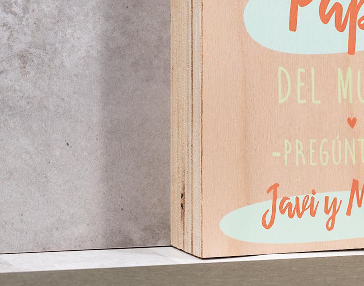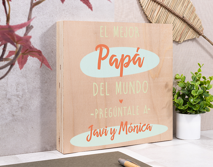 ¿Alguna vez le has dicho a tu padre que es el mejor del mundo? Una sola vez no es suficiente. ¡Recuérdaselo todas las veces que haga falta! Para ello, podrás hacerle entrega de esta tabla de madera personalizada como si fuera el mayor premio del mundo. Seguro que le hará más ilusión que cualquier otro título que pueda recibir. El mejor detalle será el nombre de los entregadores de este premio: sus hijos, su pareja... ¡Podrás escribir tu nombre o el de las personas que avalan que él es el mejor papá que existe! Así tendrás un regalo original para el Día del Padre totalmente personalizado y muy emotivo. Además, lo imprimiremos a todo color sobre las vetas de la madera. No hace falta ni una fotografía para emocionarle: sácale una sonrisa cada vez que vea por casa este cartel de madera con los nombres de las personas que más le quieren. Importante: Las maderas tienen vetas y estas quedan reflejadas en la imagen.